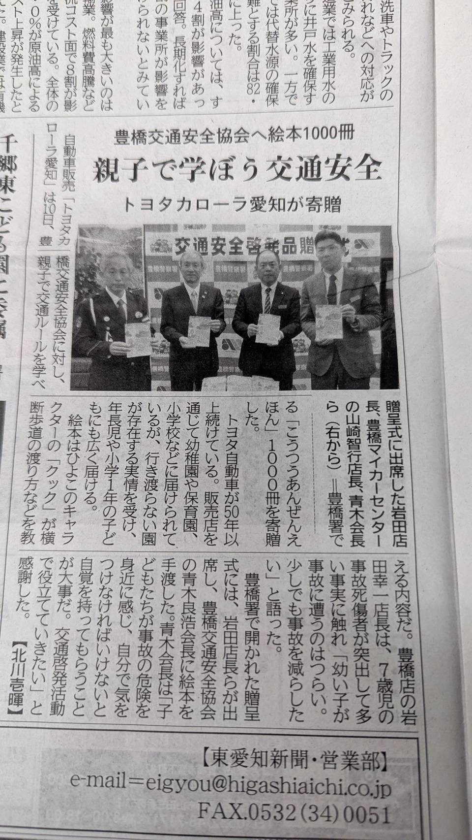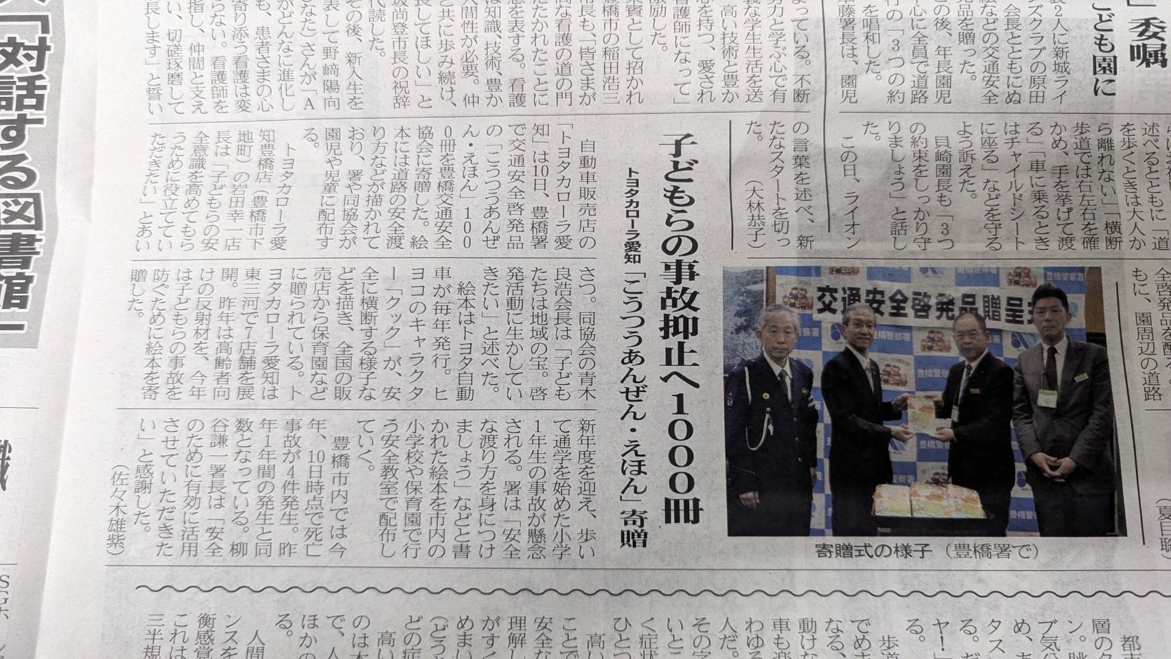 「春の全国交通安全運動」にあわせ、園児向け交通安全絵本1000冊を、交通安全協会様を通じて寄贈させていただきました。