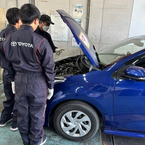 期間中、豊明店ではトヨタ自動車からの実習生の受け入れも行っており、職場体験では実習生の方の協力を頂き、車の製造の流れを踏まえながら、お客様のもとへ届くまでについて学んで頂きました。